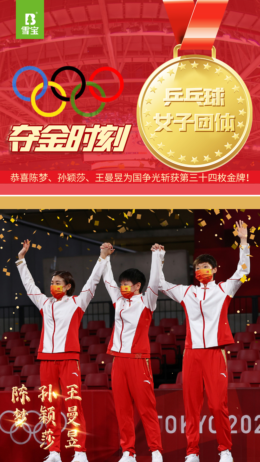 板材十大品牌雪寶祝賀陳夢、孫穎莎、王曼昱女乒團體賽奪冠 中國乒乓女團橫掃日本隊 8月5日,東京奧運會乒乓球女子團體決賽,中國隊3比0戰(zhàn)勝日本隊獲得冠軍為中國代表團奪得本屆奧運會第34枚金牌!中國隊蟬聯(lián)四屆奧運乒乓球女子團體冠軍!...