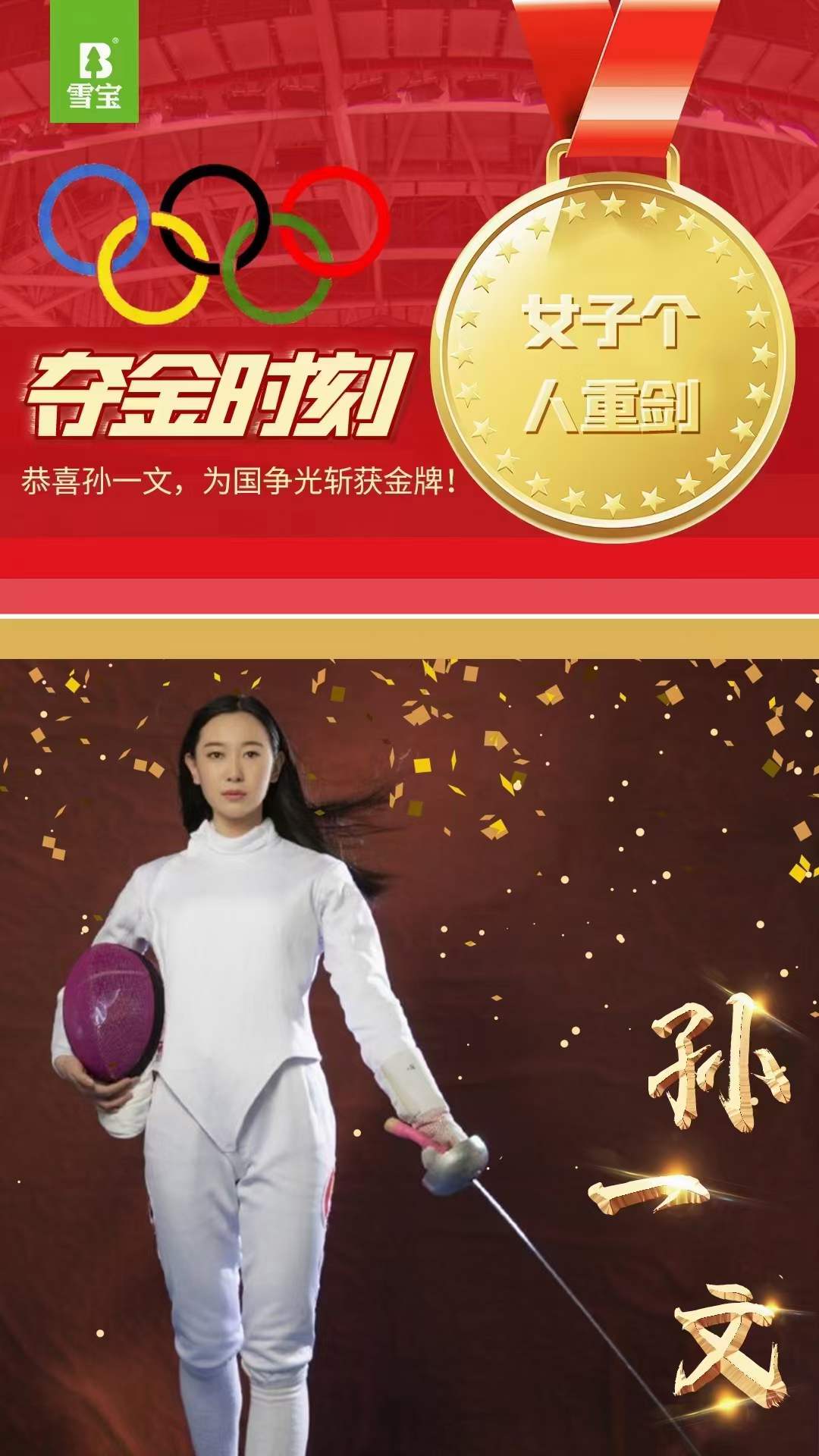 雪寶集團恭喜孫一文,為國爭光斬獲金牌。 一劍封喉!這是中國擊劍時隔9年再度拿下奧運金牌,更是中國女子重劍歷史的首金!...
