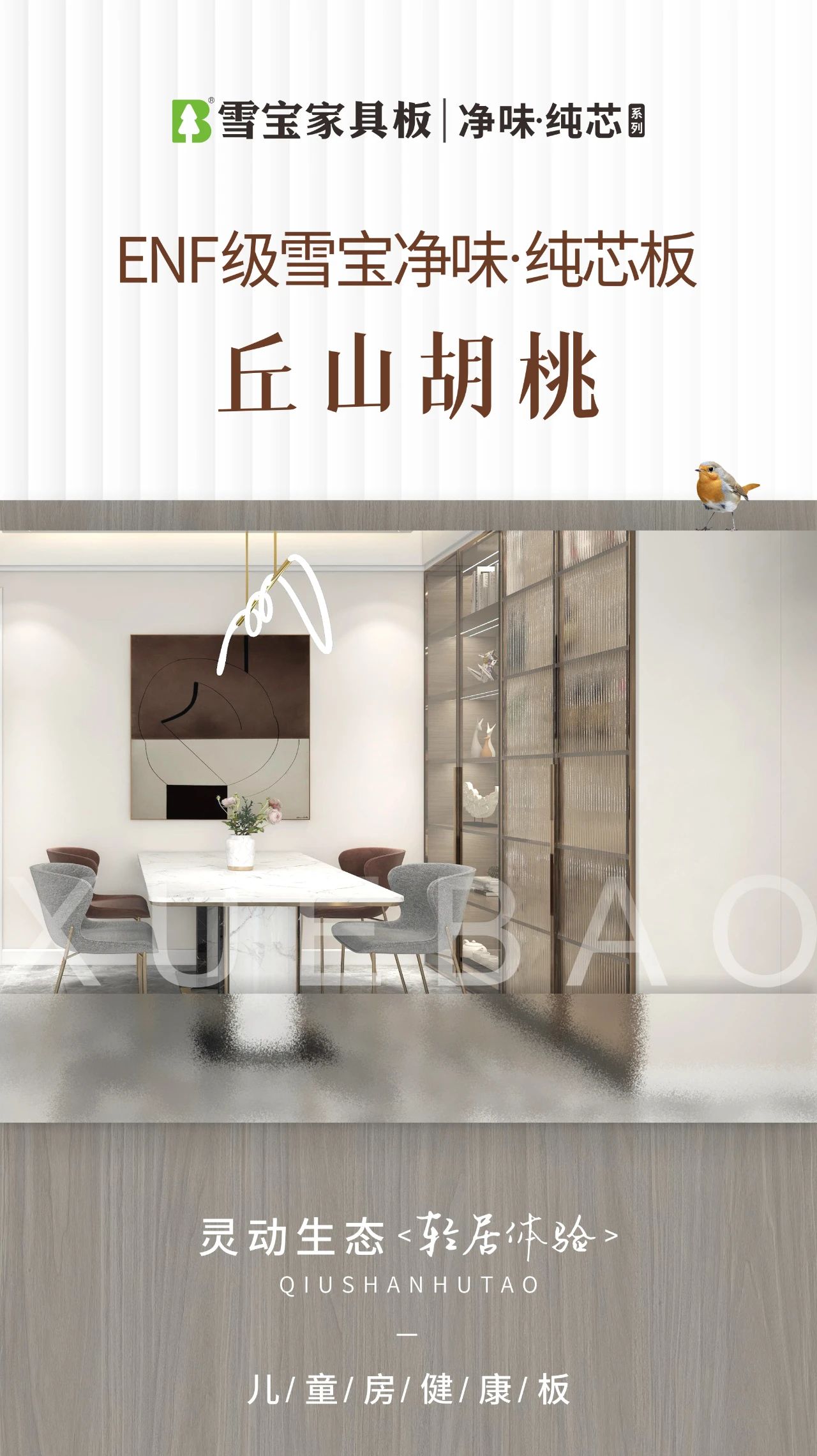一圖到底丨ENF級雪寶凈味·純芯板:丘山胡桃,帶給您靈動生態輕居體驗...