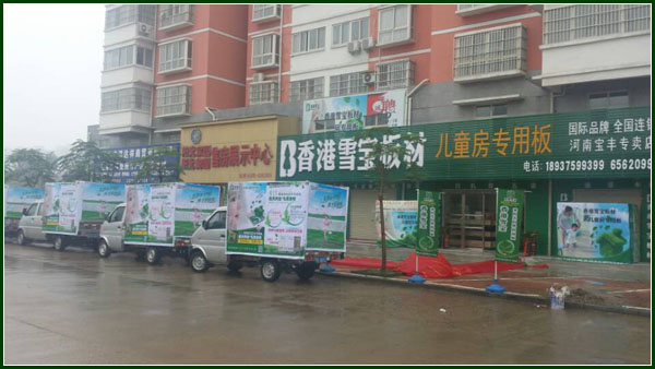 2014年9月13日雪寶板材(河南寶豐店)盛大開業,開業期間主辦方舉行了開業活動,天氣雖下有細雨,但是現場開業氣氛不減,活躍熱烈。