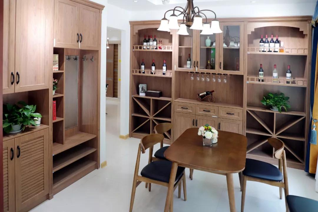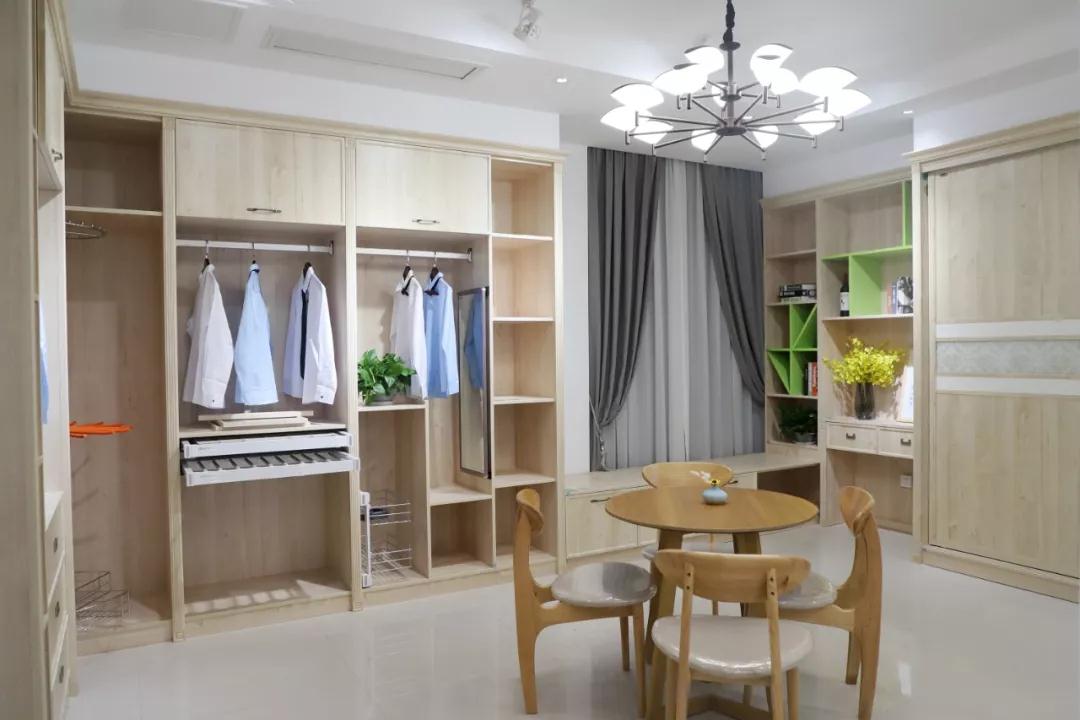 300多平米的店面內,不僅有板材、整體衣柜、五金、柜門等產品,還采用樣板間的方式,呈現(xiàn)出不同的裝修風格,將產品展示與店面設計結合,為消費者帶來最為直觀的產品效果展示,令人眼前一亮。