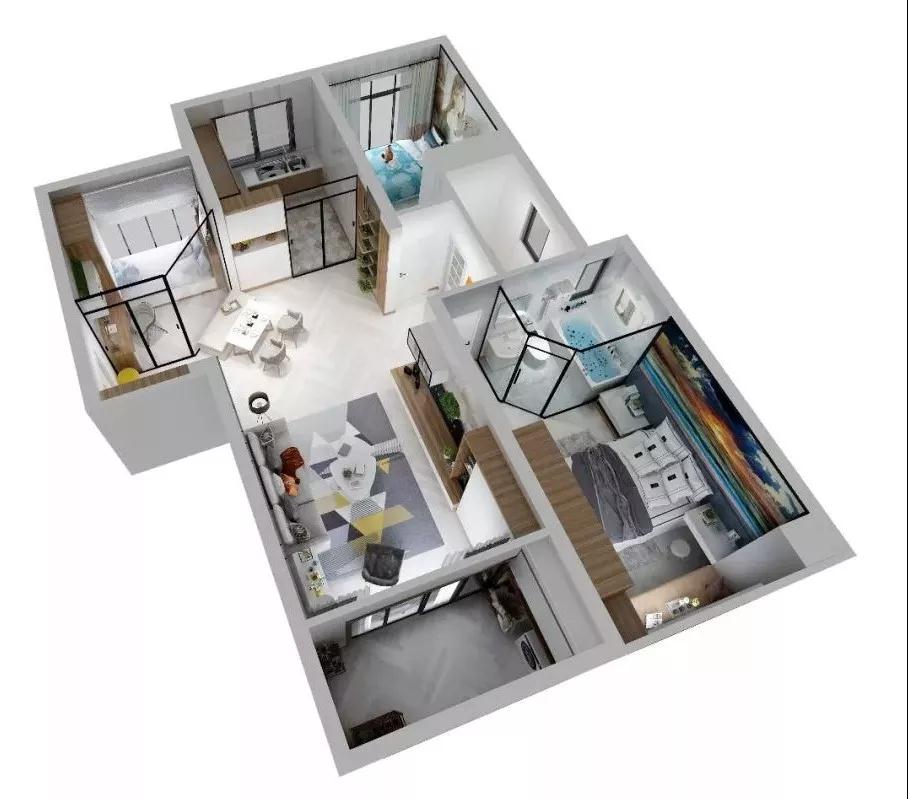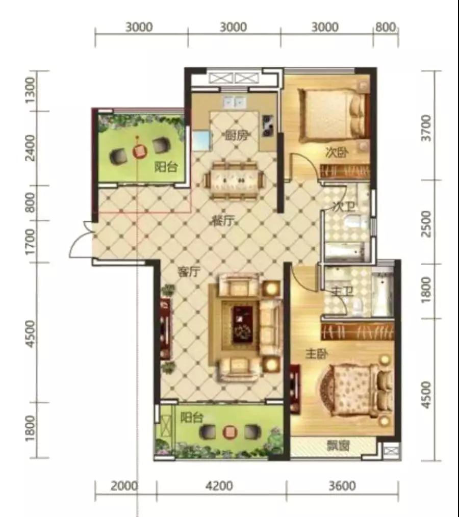 功 能 性:廚房面積小且不大實用的開放式設(shè)計;餐廳面積非常小,主臥同樣面積有限;次臥進(jìn)深較長但寬度不夠;