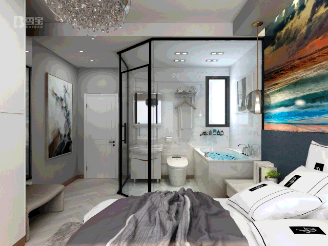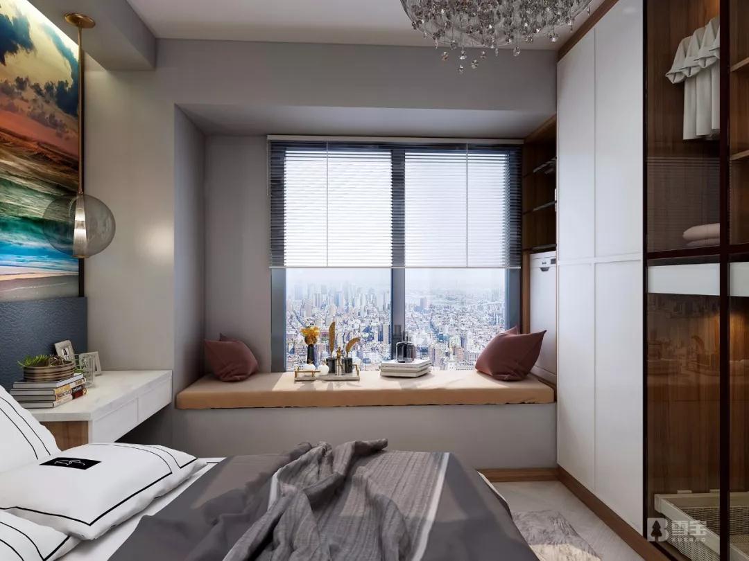 主臥設(shè)計無疑也是盡可能擴(kuò)容收納和加強(qiáng)功能性,同時兼顧了女主人的喜好,大衣柜、床頭柜、簡易書桌柜、飄窗柜在整個空間各顯其能。衛(wèi)生間采用智控鋼化玻璃打造隔斷,不用之際,主臥空間視覺開闊明朗,使用之時,智控裝置為生活隱私保駕護(hù)航,實現(xiàn)虛實自由掌控。