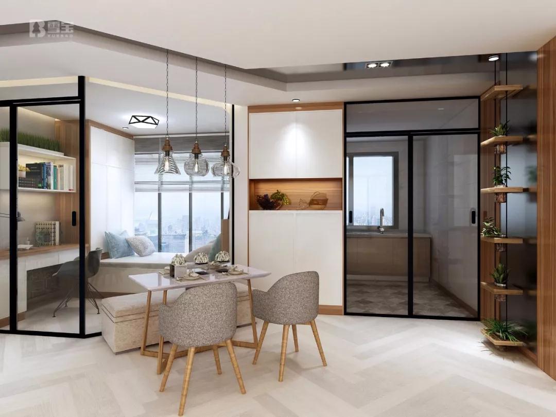 因原戶型廚房面積有限以及不大使用的開放式廚房設(shè)計可能對家居生活會造成一定弊端,設(shè)計師通過加大廚房空間并改造成封閉式廚房,充分?jǐn)U容和滿足了廚房空間功能屬性,三口之家盡享溫馨居家時光。餐廳依榻榻米智控鋼化玻璃隔斷設(shè)計擺放,空間利用恰到好處!