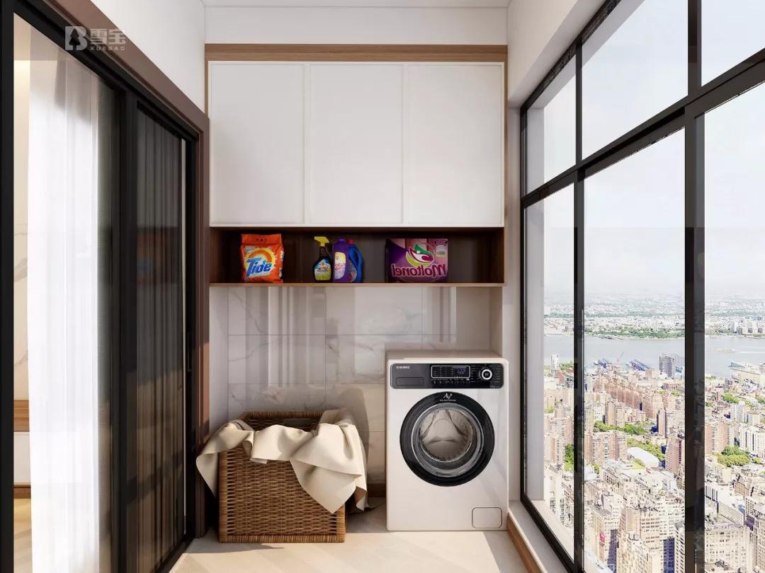 陽臺風(fēng)格及裝飾搭配與戶型整體風(fēng)格相輔相成,陽臺柜上方柜體滿足日常收納,下方鏤空為洗衣機(jī)和收納筐置一席之地。綠植裝扮盡顯盎然綠意,落地窗設(shè)計盡覽城市風(fēng)景。