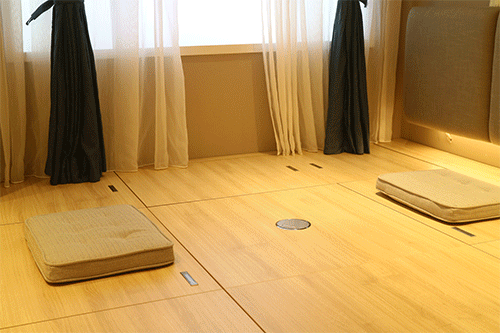 自帶升降臺的榻榻米是功能最齊全的。電動或是氣壓的升降桌,可用來喝茶小憩,同樣適合娛樂休閑,是日常修身養性必備之良品!