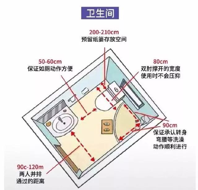 衛生間最好做干濕分離,入住后使用能少去很多麻煩,一般家里用淋浴就好了。馬桶前方留出50-60厘米的空間,左右留出空間不小于20厘米。