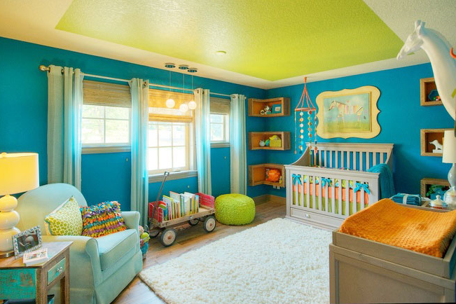兒童房的顏色選擇也是有講究的。家具顏色要清晰且易分辨的亞光純色,避免鮮艷混雜及過分高亮的顏色刺激引起孩子們的視覺疲勞。