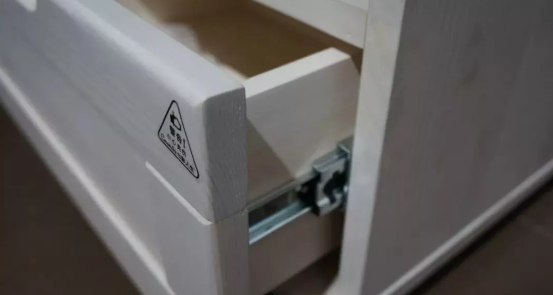 抽屜可以說是孩子們在家最喜歡的“玩具”之一。如果沒有配備防拉脫裝置,在過猛用力、反復地拉扯下可能拉脫,造成砸傷或夾傷的意外。這要求家長在選擇兒童房柜體時,要留心抽屜這類推拉部件上導軌、鉸鏈這些地方的設計。