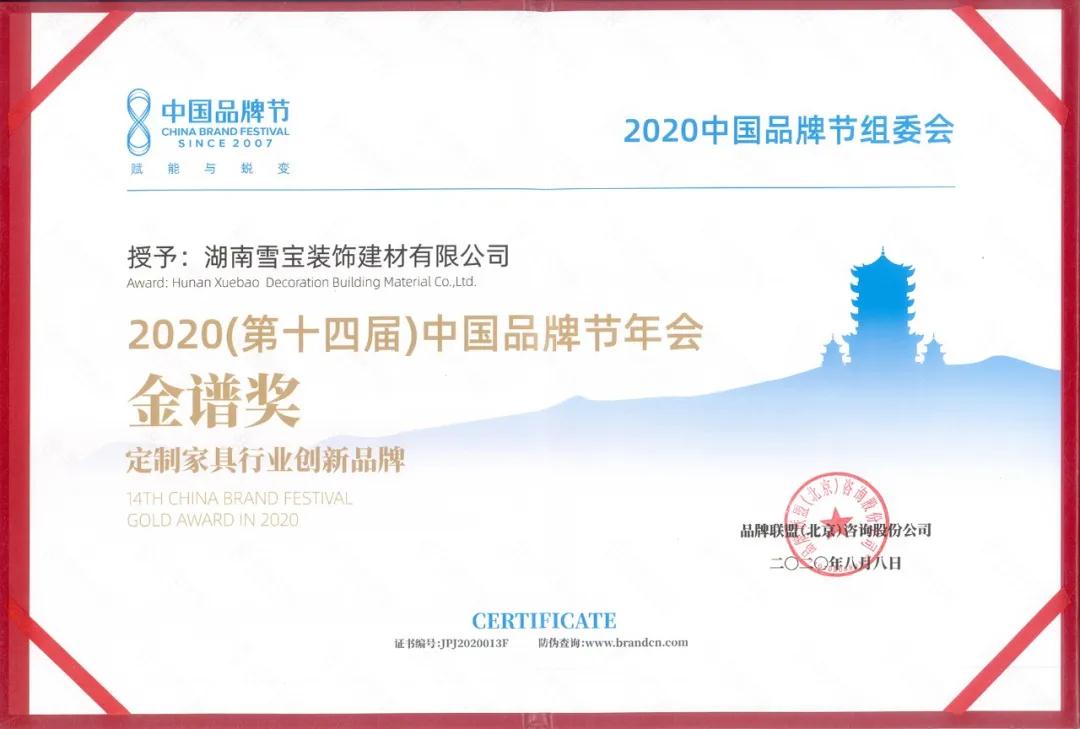 第14屆中國品牌節(jié)丨衣柜板十大品牌雪寶摘獲定制家具行業(yè)創(chuàng)新品牌