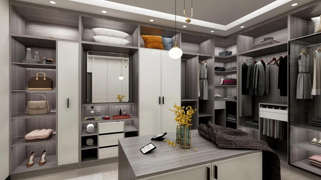 展示區:展示區屬于衣柜的畫龍點金之處,可展示主人穿衣和生活品味。展示區可以是開放式的,也能是玻璃透明式的,開放式區域可以儲放收藏品或鑰匙錢包等,便于伸手取物。
