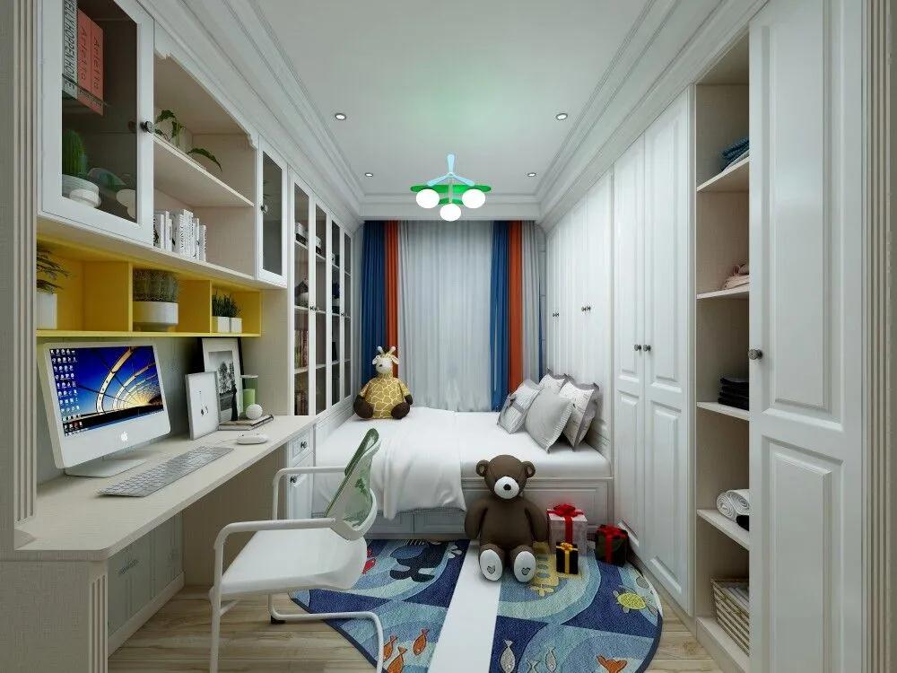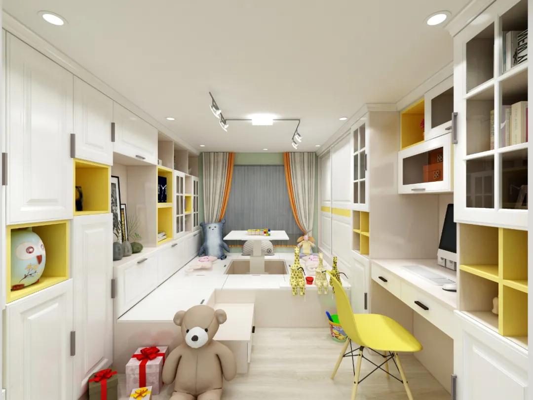 兒童房抬高的一體式榻榻米不僅為好動(dòng)的孩子提供了足夠的游戲區(qū)域,軟硬合適的床面也有益于孩子骨骼成長(zhǎng),也不用擔(dān)心孩子睡覺摔下地了。