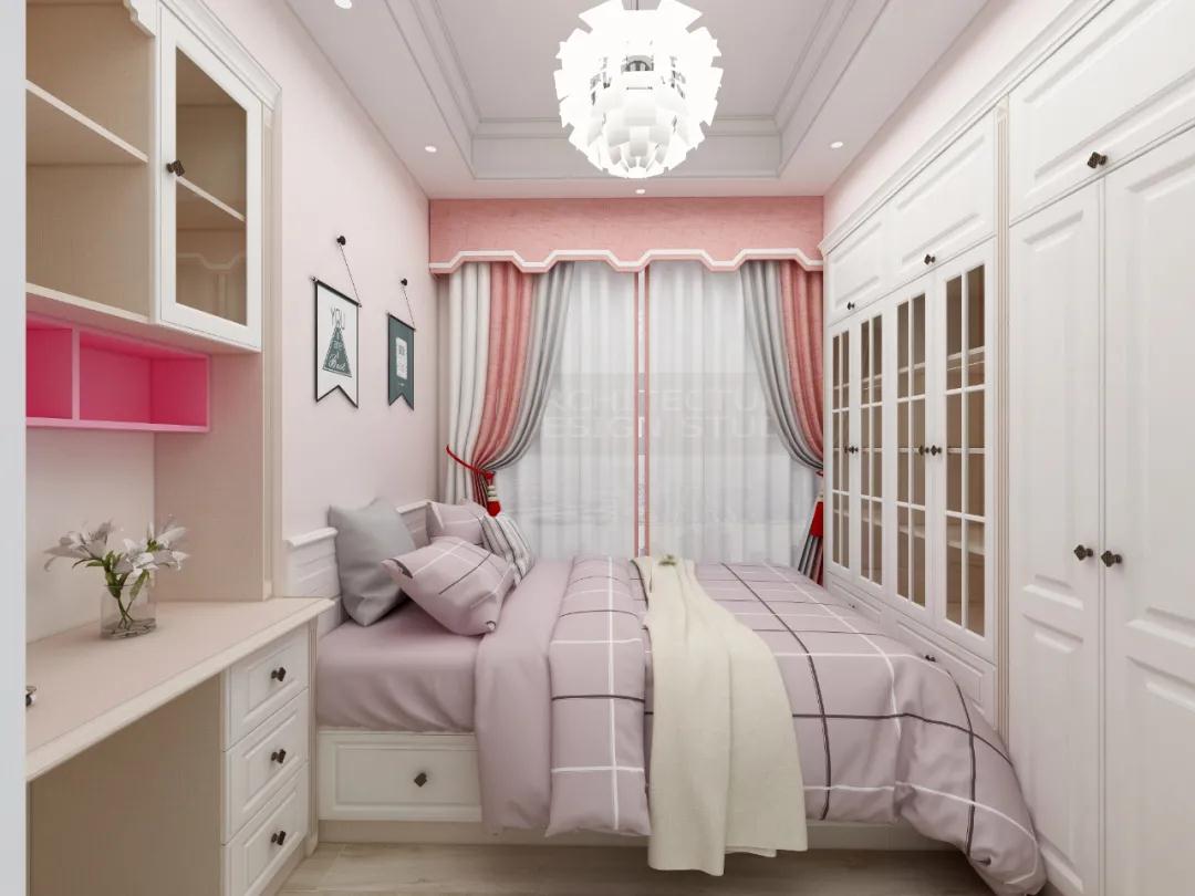 如果擔(dān)心睡覺的時(shí)候不安分,總是踢到柜子,甚至有種受到約束的感覺,不妨根據(jù)高度給衣柜下方留空,這樣還可以將抱枕、被子隱藏起來,賦予空間更多的收納功能。