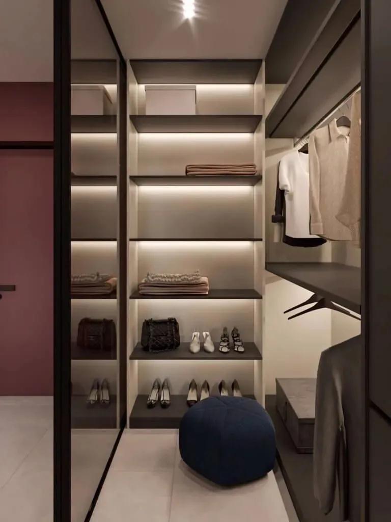 沒有照明的衣帽間就像沒有生機的雜貨鋪。尤其是在空間不是很大的衣帽間中,照明起著尤為重要的作用。好的照明可以讓衣帽間看起來更開闊更舒服。