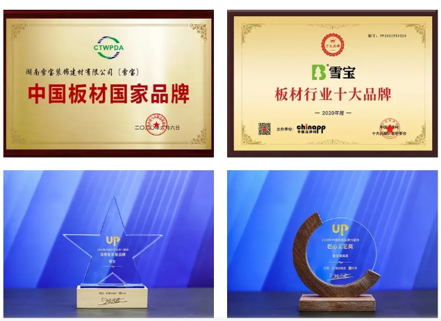作為健康家居生活守護者,雪寶載譽而歸,相繼榮膺2020中國板材影響力品牌、中國質量先鋒檔案公示品牌、中國板材國家品牌、定制家具行業創新品牌、2020年度板材行業十大品牌、2020年度全屋定制行業十大品牌、匠心工藝獎、消費者喜愛品牌、客戶滿意度五星證書等榮譽稱號。
