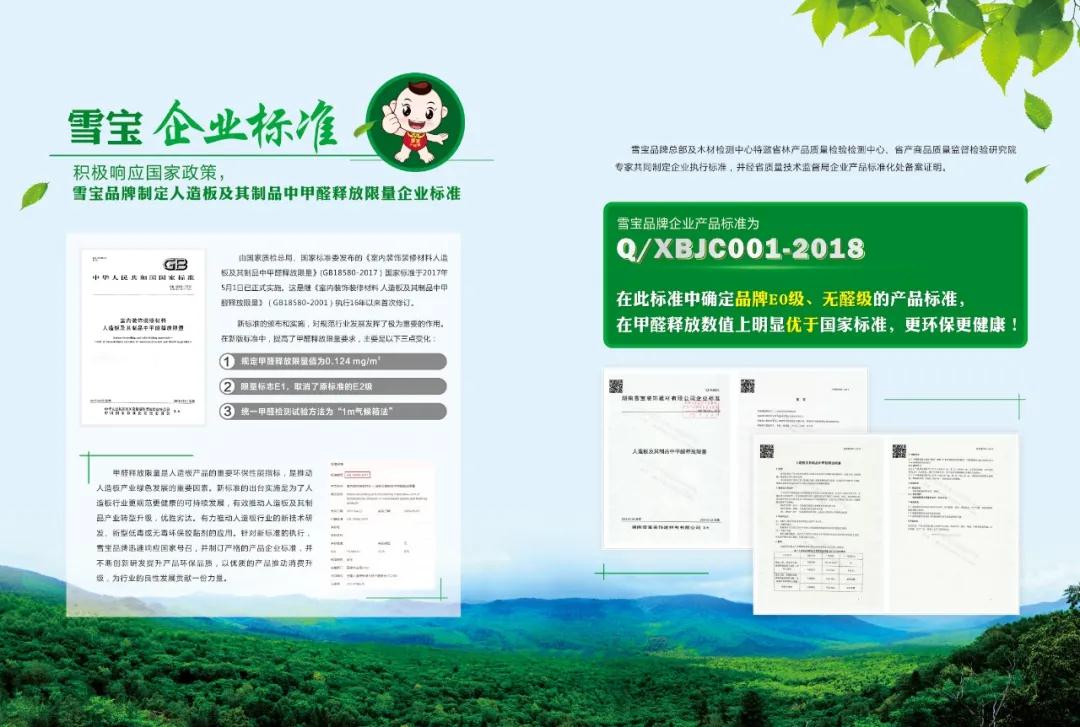 雪寶企業標準,確定品牌E0級、無醛級產品標準~