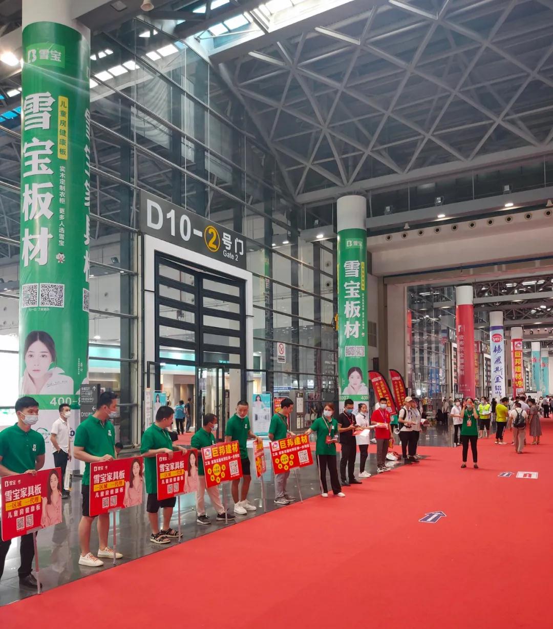 在本次2021廣西·南寧建博會會場,雪寶廣告位優勢明顯、效果顯著。同時,穿著“綠馬甲”的雪寶家人穿梭展會現場儼然成為展會上一道亮麗的風景線,在本次展會上,成績可觀。收獲諸多雪寶家具板意向加盟商,對雪寶品牌也紛紛豎起大拇指