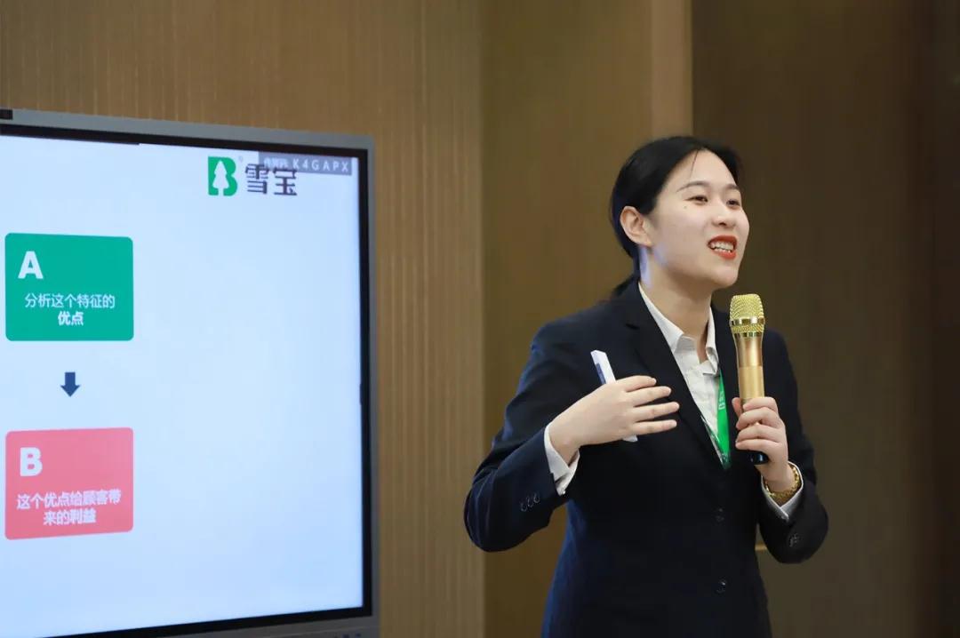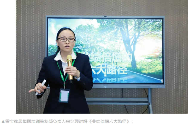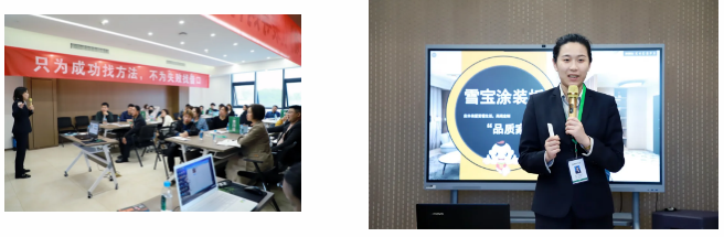 雪寶集團(tuán)培訓(xùn)講師謝佳妤老師講解《抗菌防霉板》、《涂裝板》、《雪寶五金》、《雪寶FABE銷售法則》系列課程;