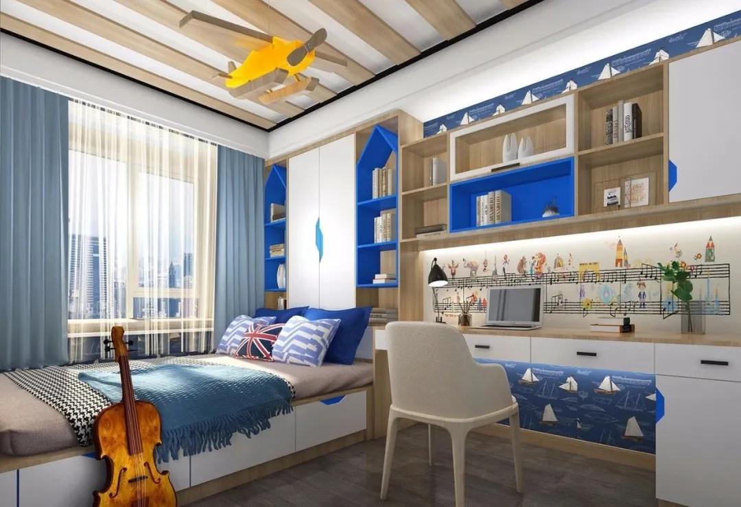 房間面積較大或者兒童年齡較大,裝修時盡可能的滿足孩子成長過程的不同需求,將功能最大化。