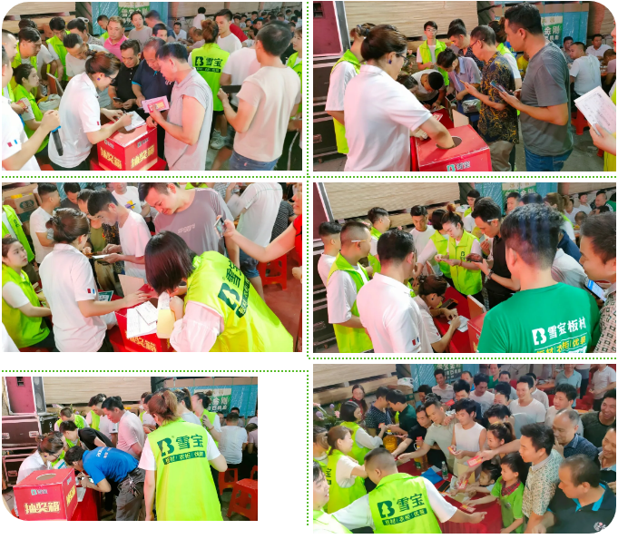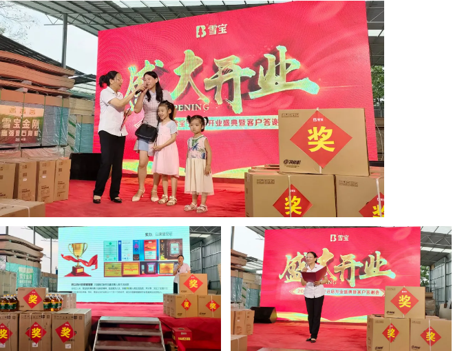 因酒店接納容量不足,本次答謝會最終選在雪寶寧遠店羅總自家倉庫舉辦,讓每一位來賓朋友近距離親身體驗雪寶系列產品的同時,也充分顯現雪寶品牌在寧遠地區的強大實力。