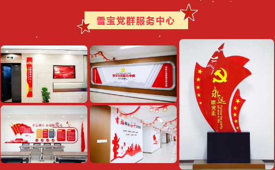 雪寶家居產業園總部大樓六樓為雪寶黨群服務中心,黨建文化標示處處可見,顯示出雪寶永遠更黨走的堅定信念!