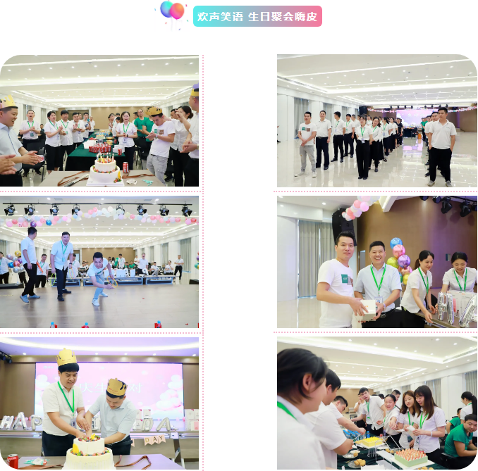 生日會(huì)溫馨而熱烈,大家一起玩游戲、切蛋糕,分享喜悅,好不熱鬧。當(dāng)熟悉的生日祝福歌聲響起,每一位壽星臉龐都洋溢出幸福的笑容,眾壽星也都紛紛許出自己心中最美好的心愿,共同分享著生日的喜悅,感受著公司這個(gè)大家庭的溫暖。