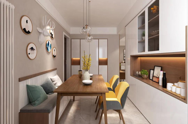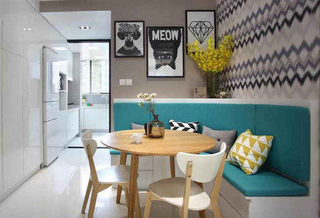 對于小戶型餐廳來說“卡座”就是救星,卡座設計非常節(jié)省家居空間,這種設計合理地利用了家居空間,讓新房環(huán)境變得更加寬敞明亮,日常走動也變得方便自由許多。卡座設計也方便家庭的衛(wèi)生清潔,不用移動太多的桌椅,也少了磕碰事件的發(fā)生,很是安全衛(wèi)生。另外,卡座設計還具備一定的收納能力,我們可以將物品擺放在卡座下方的收納格里面,緩解家庭的收納壓力,真的非常實用。使用板材十大品牌雪寶生態(tài)板還能保證甲醛釋放,不用擔心環(huán)境問題。