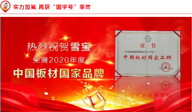 再獲“國字號”榮譽!中國板材國家品牌:雪寶!