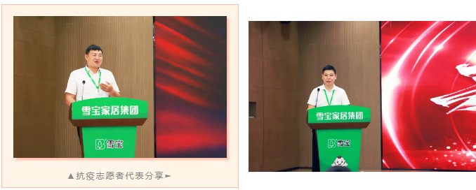 首先,湖南雪寶裝飾材料有限公司副總經理李杰先生致詞。作為抗疫志愿者活動的總指揮,李副總重溫和總結了8月初雪寶家居集團積極參與城市抗疫公益活動事跡。