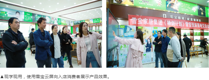 雪寶培訓部經理宋芳女士詳細講解門店運營神器“雪寶智慧云屏”,作為一款集企業展示、設計下單、內訓學習、遠程互通等多功能于一體的高清智能多媒體一體機,有助于門店多維智能展示,諸多實用功能助力賦能門店銷售業績穩步提升。