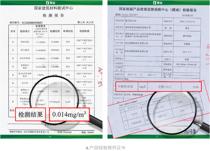 雪寶數十年來始終如一走在國家標準的前面,通過層層把關生產工序,嚴格把控產品質量,提升板材品質性能。從原材甄選到工藝創新,從嚴格品控到品質堅守,雪寶一直堅持和貫徹“兒童房健康標準”打造的雪寶E0級環保板材“兒童房健康板”,其甲醛釋放數值遠優于歐標E0級(甲醛釋放量≤0.5mg/L)和原國家標準,直至現在與新國標相契合。