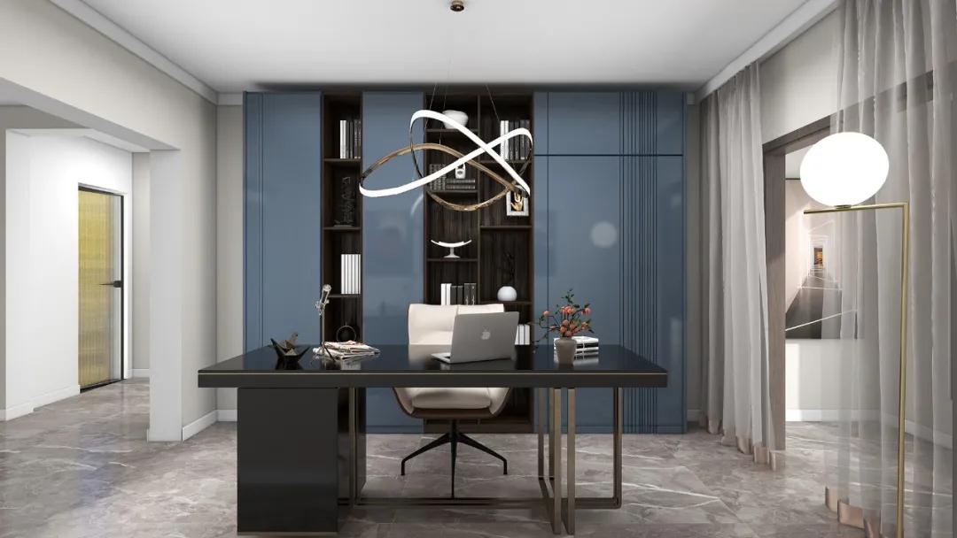 書房的使用頻率不如客餐廳等空間高,所以易清潔、防落灰是第一要務。超高門由于是無縫銜接,所以落灰更少,打掃起來更快捷方便。收納遵循藏八露二的原則,就算沒有時間清理,也能讓空間一直保持整潔不雜亂。