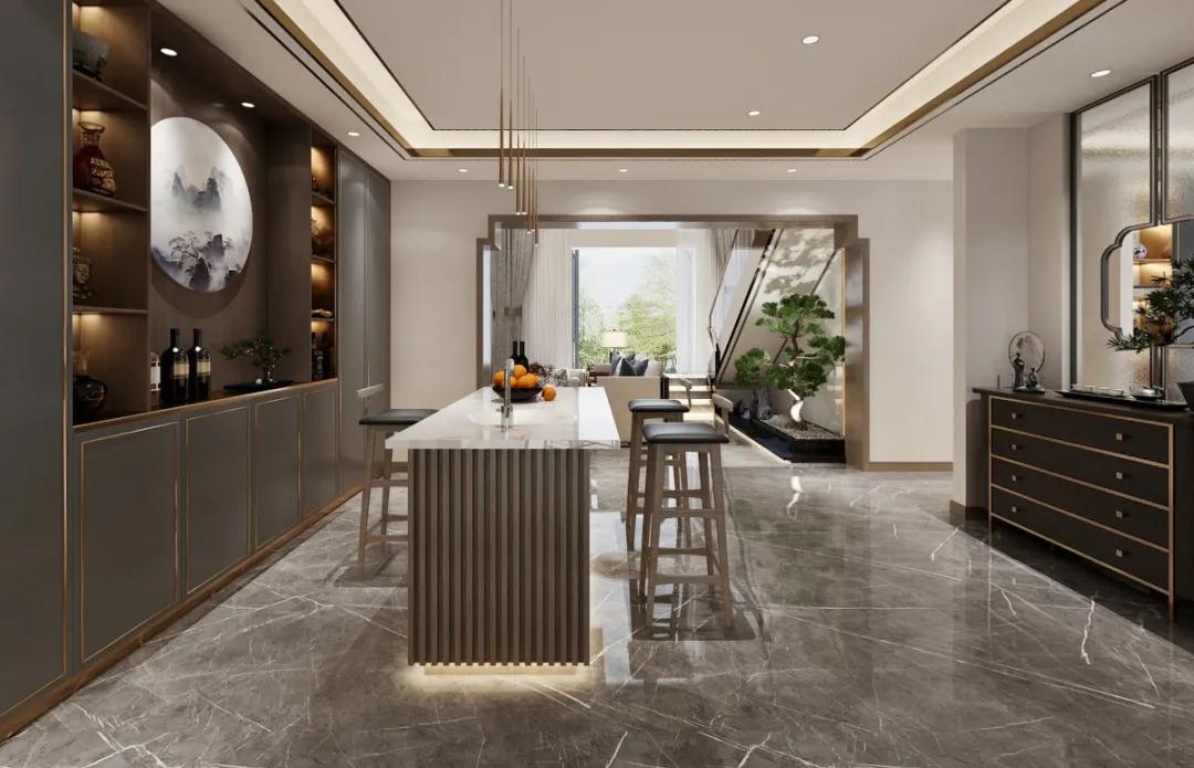 隨著消費市場的需求劇增,含蓄秀美、淡雅墨韻的新中式風越來越成為風靡全球的流行風格。在保留中式核心元素,并推陳出新,通過現代材質,比如巖板和柔光大理石瓷磚、布藝家具、盆景、屏風裝飾等,既保留了中式巧妙兼柔,又賦予了新的表現形態,即大而不空,厚而不重。