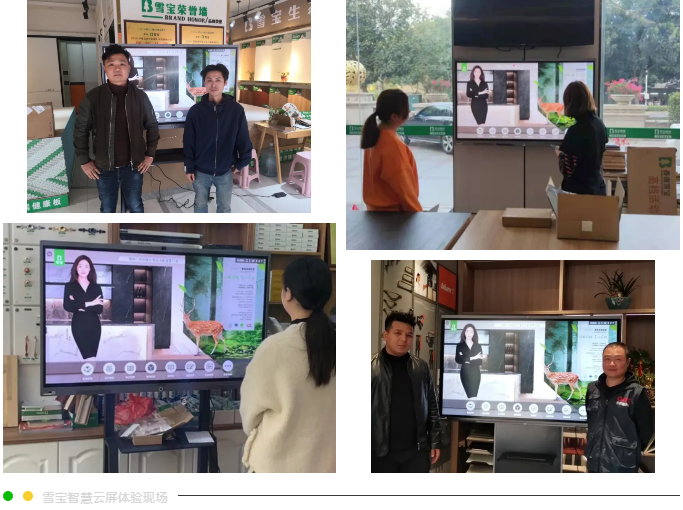 雪寶智慧云屏是一款集企業(yè)展示、設(shè)計(jì)下單、內(nèi)訓(xùn)學(xué)習(xí)、遠(yuǎn)程互通等多功能于一體的高清智能多媒體一體機(jī),有助于門店多維智能展示,打通總部與終端門店的點(diǎn)對(duì)點(diǎn)溝通,提升門店經(jīng)營(yíng)效率。