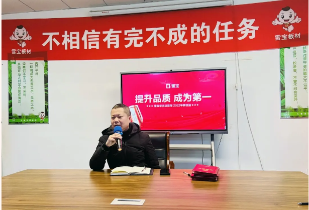活動伊始,雪寶華北生態板營銷副總監陳家義先生做開春第一課“狠抓實干·雪寶華北2022年整體戰略規劃”致詞。指出,未來市場競爭會異常激烈,環境會愈發復雜,希望全體雪寶人上下一心,以戰無不勝攻無不克的鐵軍精神給雪寶華北區域“2022新目標新征程”的戰斗譜寫新的輝煌篇章。