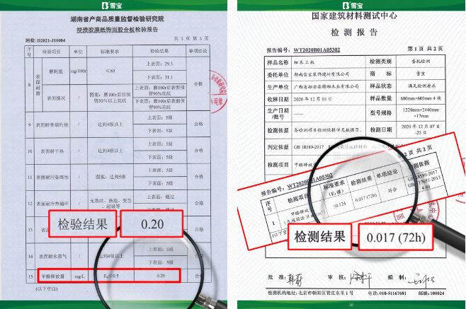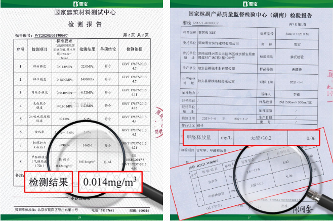 高品質高標準的雪寶,無論選材、工藝、品質、服務、口碑等諸多方面都有著絕對優勢和傲人成績,已成功研發生產出企業標準無醛級板材,這個數據也達到新國標ENF級(≤0.025mg/m³)!