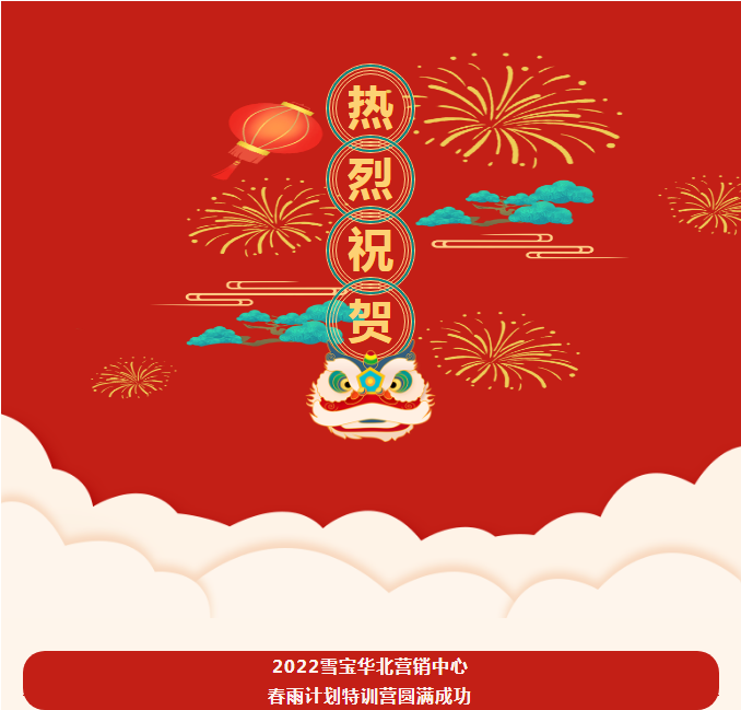 熱烈祝賀雪寶華北營銷中心“春雨計劃”特訓營圓滿成功!