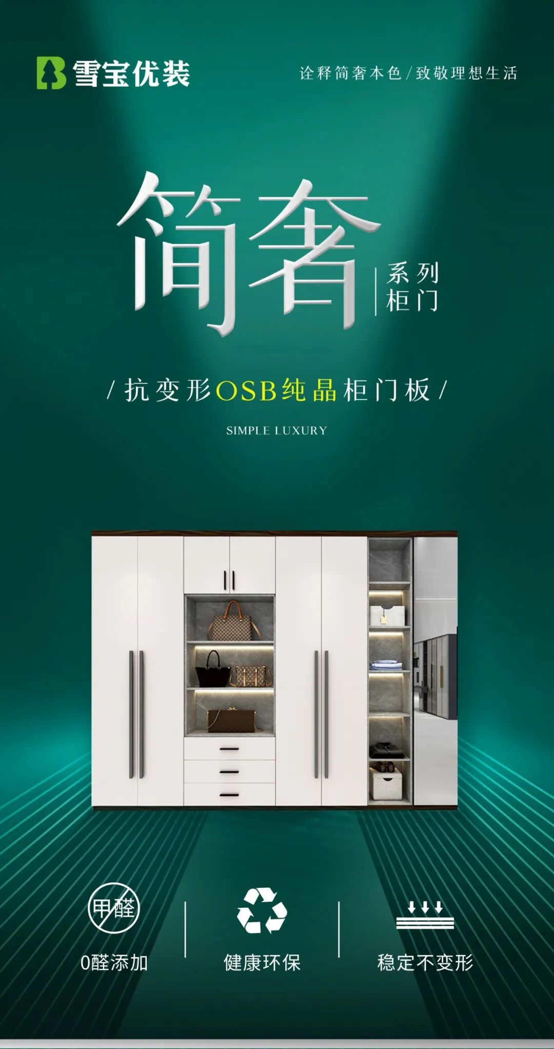 驚艷上新丨雪寶簡奢系列抗變形OSB純晶柜門板!