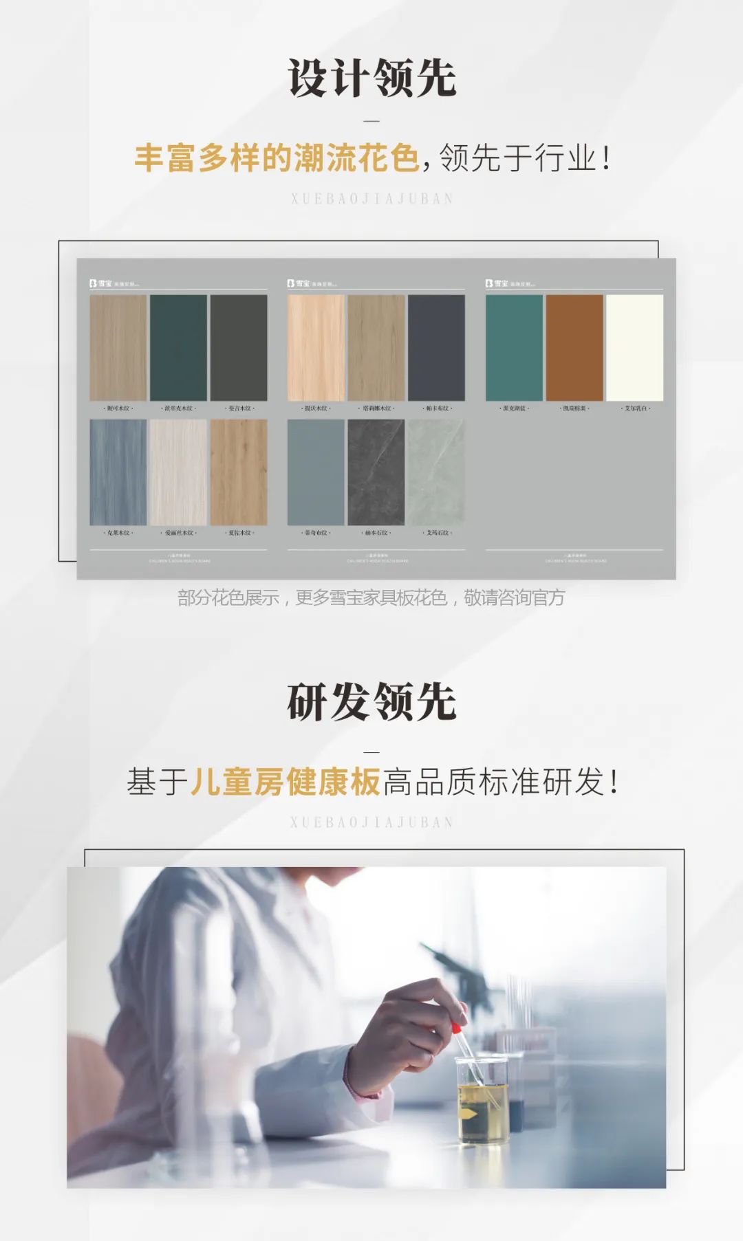• 雪寶兒童房健康家具板——給足您安“醛”感、高級感、品質感!