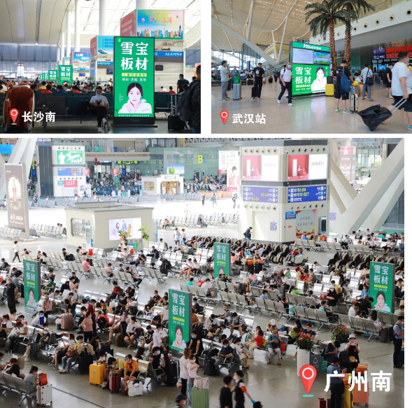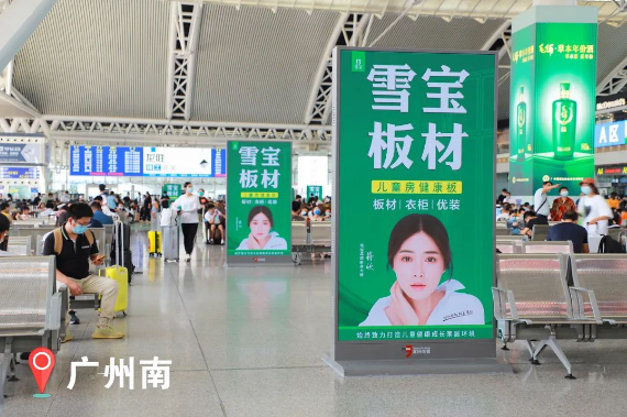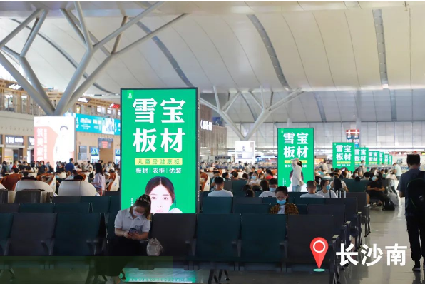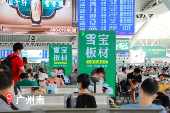 高鐵以“國家新名片”的國家高度為品牌傳播背書,為品牌形象帶來無以倫比的附加值,是品牌傳播的制高點,具有不可替代性,唯一性,排他性,傳播到達率 100%。雪寶板材以強勢之姿打出華南區域高鐵站群廣告沖擊波,代表行業品牌高端形象,讓品牌直接觸達目標人群,實現品牌強有力的曝光。