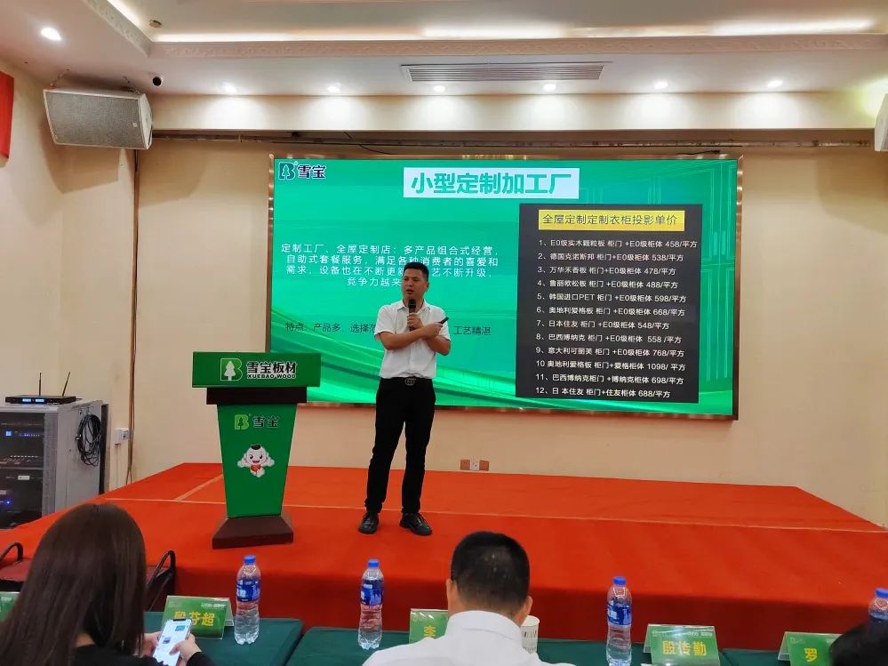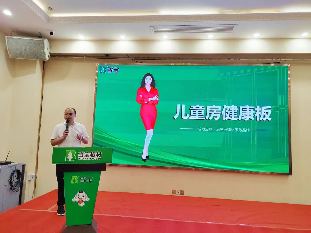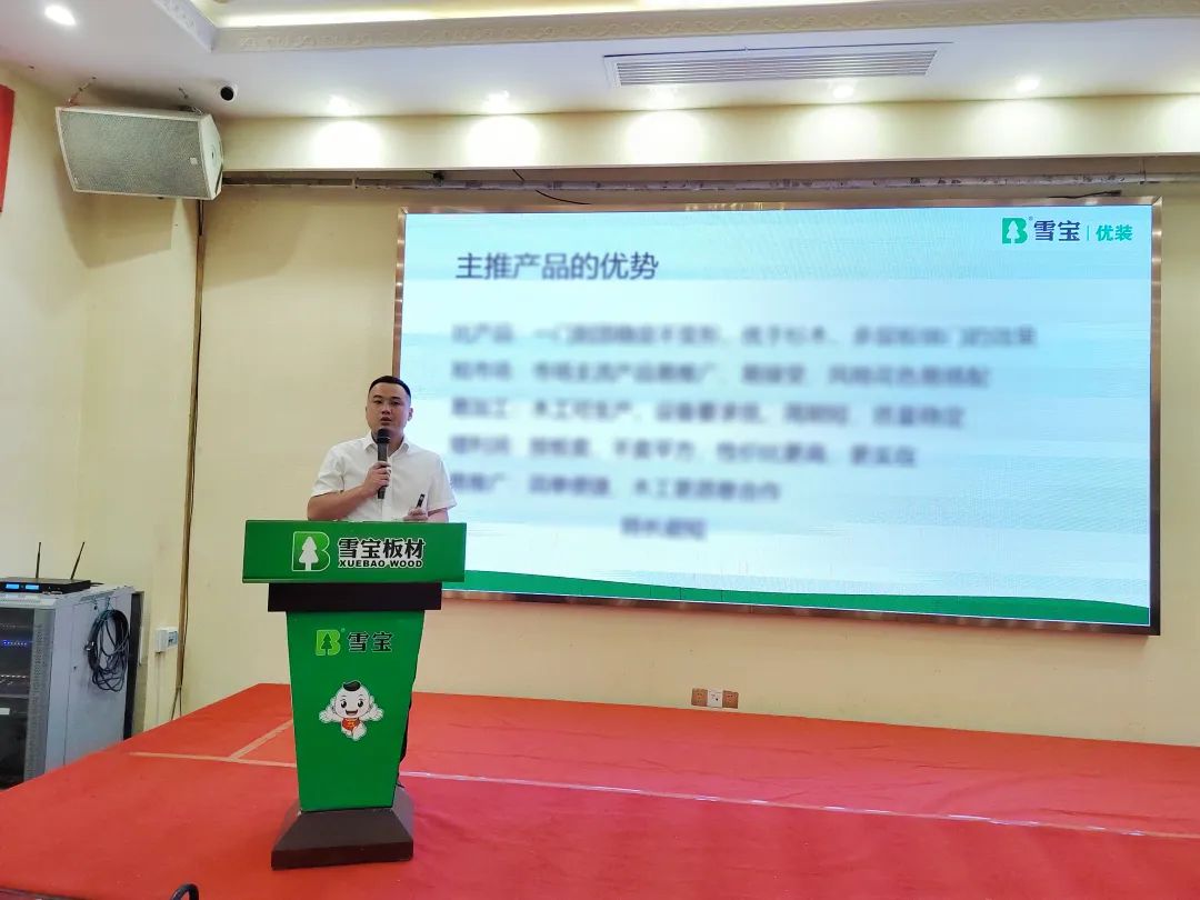 區域經理羅興進行雪寶品牌介紹,從品牌硬核實力、核心定位、獎項榮譽、重大事件、行業口碑等方面深入闡述,突出強化“雪寶板材兒童房健康板”的獨特差異化核心優勢和行業地位。