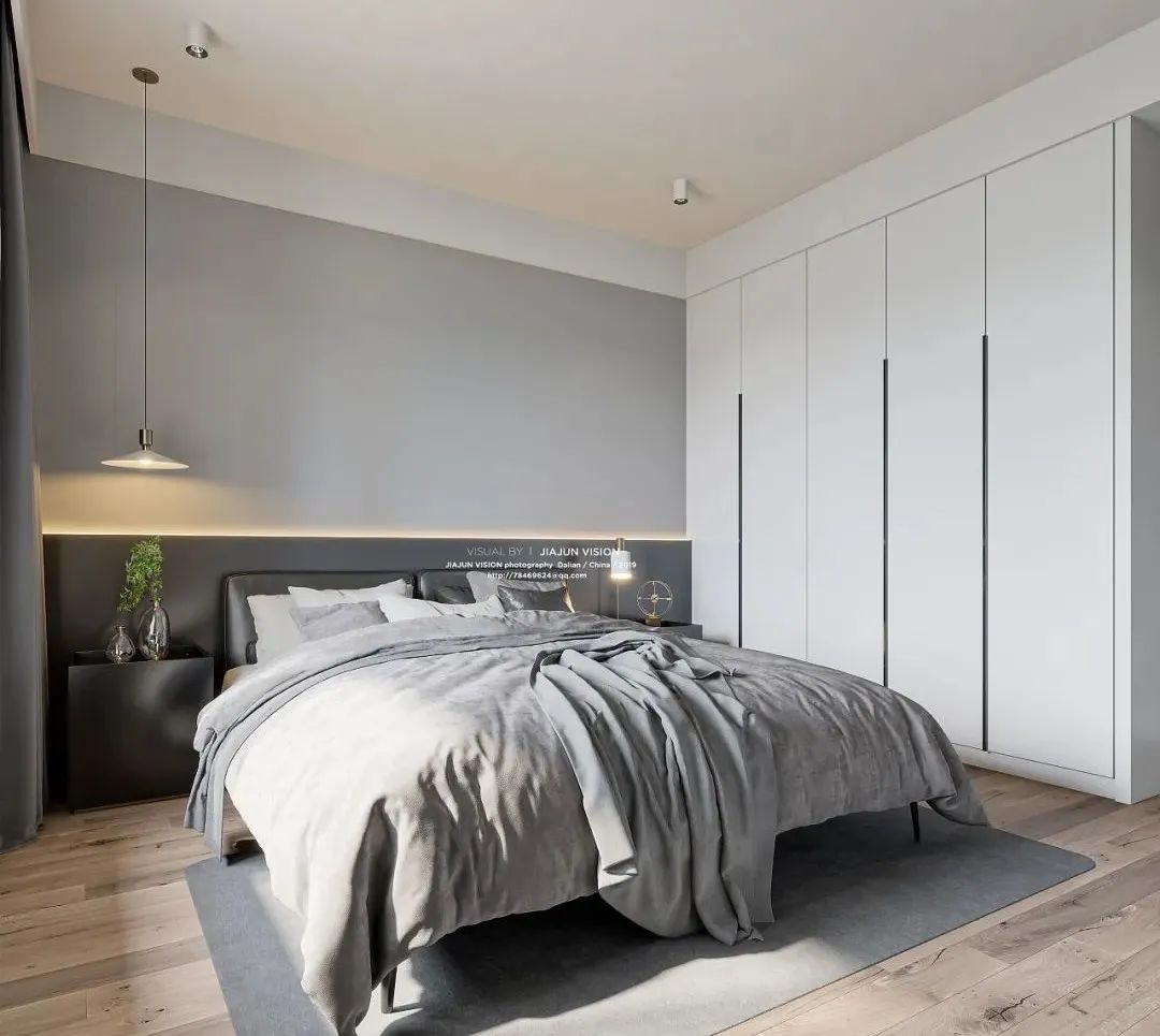 超高柜門,顧名思義,就是柜門做高,它也有另外一個叫法叫做通頂柜門。超高柜門一般都是一塊板從上貫到下,整體流暢,干凈利落。極簡自然的氣質,就是它倍受歡迎的原因。大多數超高柜門都是運用在極簡風格、輕奢風格的空間設計中,可以做無把手,或者豎長把手,或者橫短把手,給人整體美觀、簡潔自然的感覺。