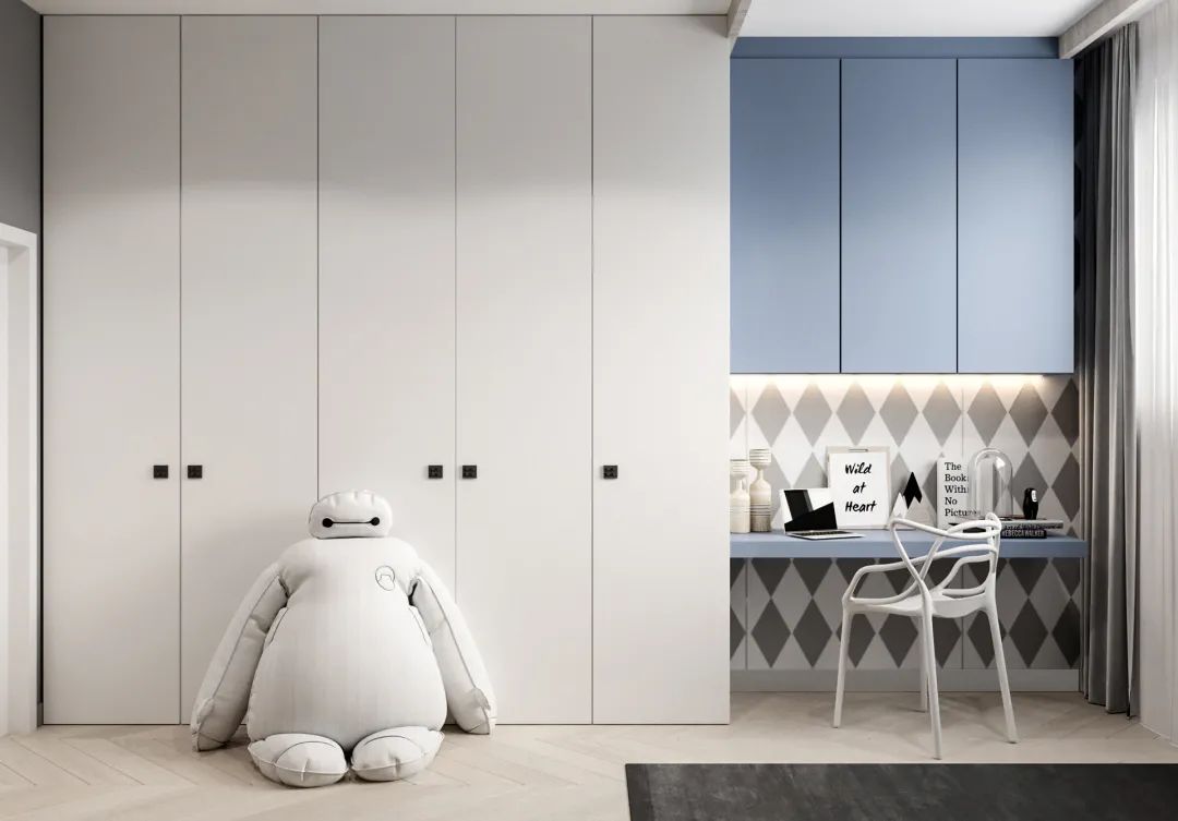 傳統的柜體的柜門板都是外凸結構,因此都會有尖角邊緣的存在,這樣就會有被磕碰受傷的風險。另一方面把手也是人受傷磕碰的罪魁禍首之一,不管是大人也好,或者是兒童都容易會碰到。無把手超高柜門的設計,頂天立地垂直挺立的整體柜門板,就避免了傳統柜門板產生的尖角邊緣,也除去把手帶來的磕碰風險。
