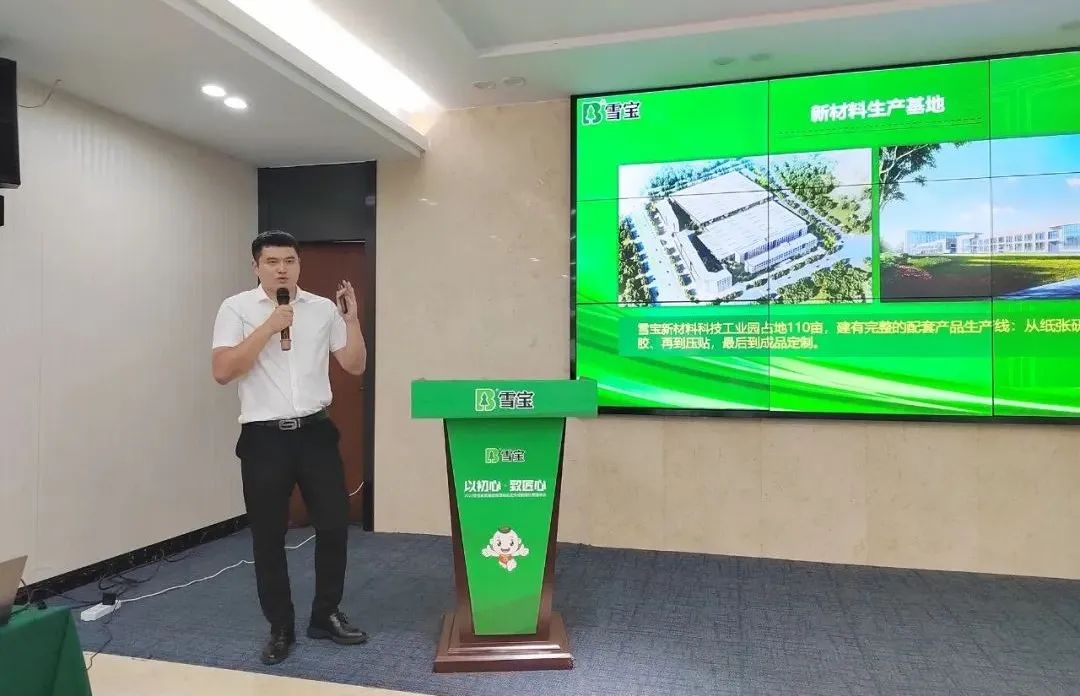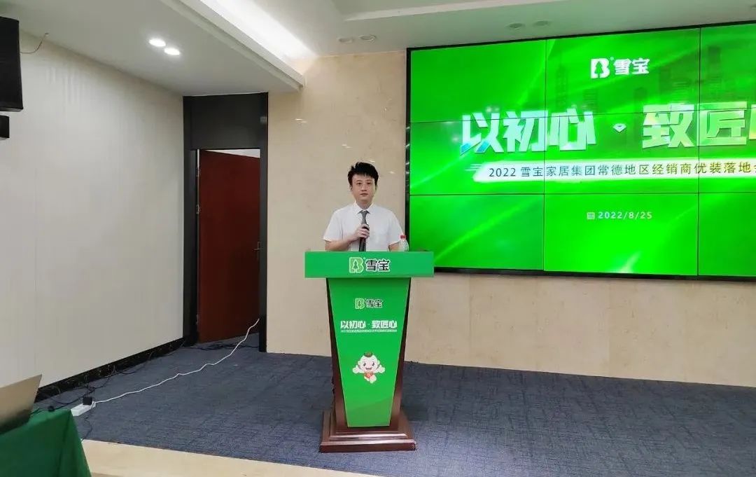 會上,雪寶常德區域負責人彭經理從雪寶品牌創立到品牌經營之道深入淺出講解《雪寶品牌介紹》,層層遞進地向經銷商們展現品牌風采。同時雪寶作為行業首創“兒童房健康板”高環保標準的中國板材國家品牌,以高環保、高品質的產品贏得了消費者的一致好評,并以領跑國家新國標ENF級的高環保產品奠定了品牌在行業中的強勁實力地位,同時給品牌經銷商打造了好產品質量保障的堅固壁壘。