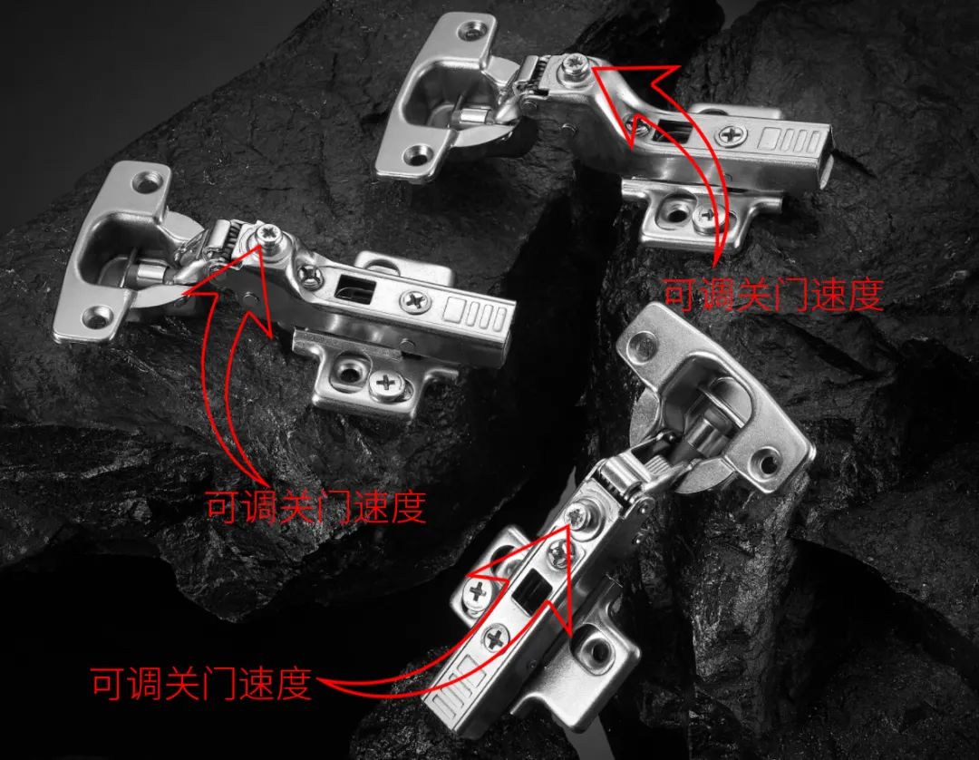 方寸之間顯真章,柜門開合更輕柔。針對當下很多左右兩扇門板高度、寬度不同,會出現同時關門、但是關門不速度不一的情況,在雪寶890超級靜音鉸鏈上就能得到完美解決。通過調動鉸鏈臂身上的“可調關門速度”螺絲,即可快速實現將關門的速度調到自己想要的范圍值。