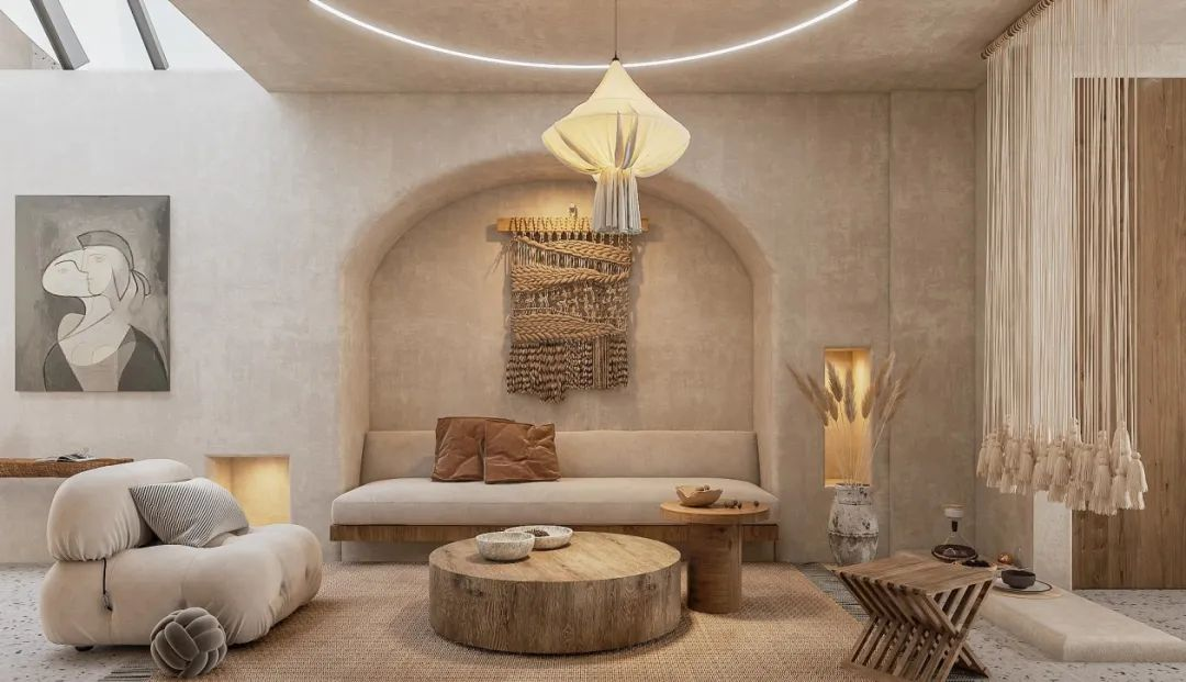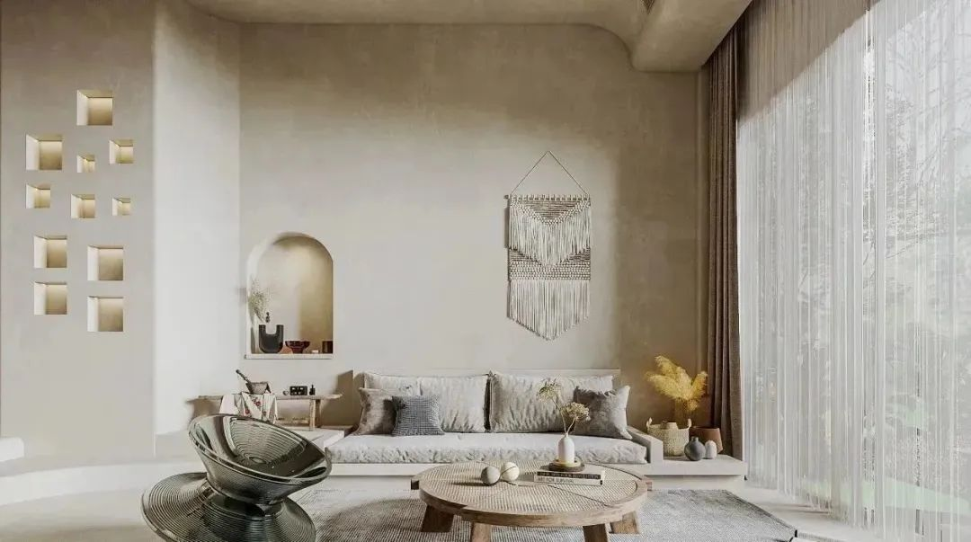 侘寂風會模擬自然材質,自然材質既有一定的肌理感,又有獨特的紋理質感,帶來返璞歸真的親切感。