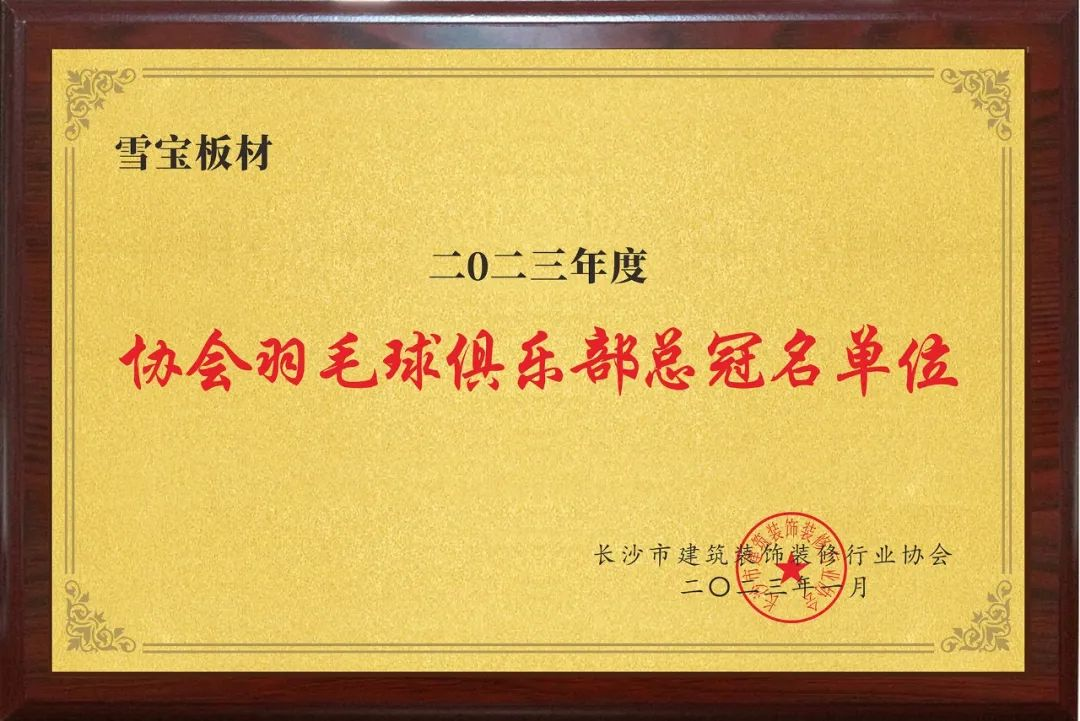 弘揚(yáng)行業(yè)品質(zhì)服務(wù)和工匠精神,活動現(xiàn)場,榮耀表彰年度優(yōu)秀材料服務(wù)企業(yè),雪寶憑借強(qiáng)硬的品牌綜合實力,摘獲“2022年度優(yōu)秀材料服務(wù)企業(yè)”殊榮!用心創(chuàng)造行業(yè)典范,榮譽(yù)源自品牌實力。此次雪寶在眾多品牌中獲得“2022年度優(yōu)秀材料服務(wù)企業(yè)”,得到建筑裝飾裝修行業(yè)的高度認(rèn)可,這與雪寶近30年來在木業(yè)的精耕細(xì)作分不開,也與雪寶的綜合實力、產(chǎn)品品質(zhì)、研發(fā)創(chuàng)新及成功轉(zhuǎn)型升級息息相關(guān),是對雪寶品牌堅定貫徹“兒童房健康板”高環(huán)保理念及踐行高品質(zhì)的產(chǎn)品理念和一流品牌優(yōu)質(zhì)服務(wù)的大力肯定。冠名長沙市裝協(xié)羽毛球俱樂部