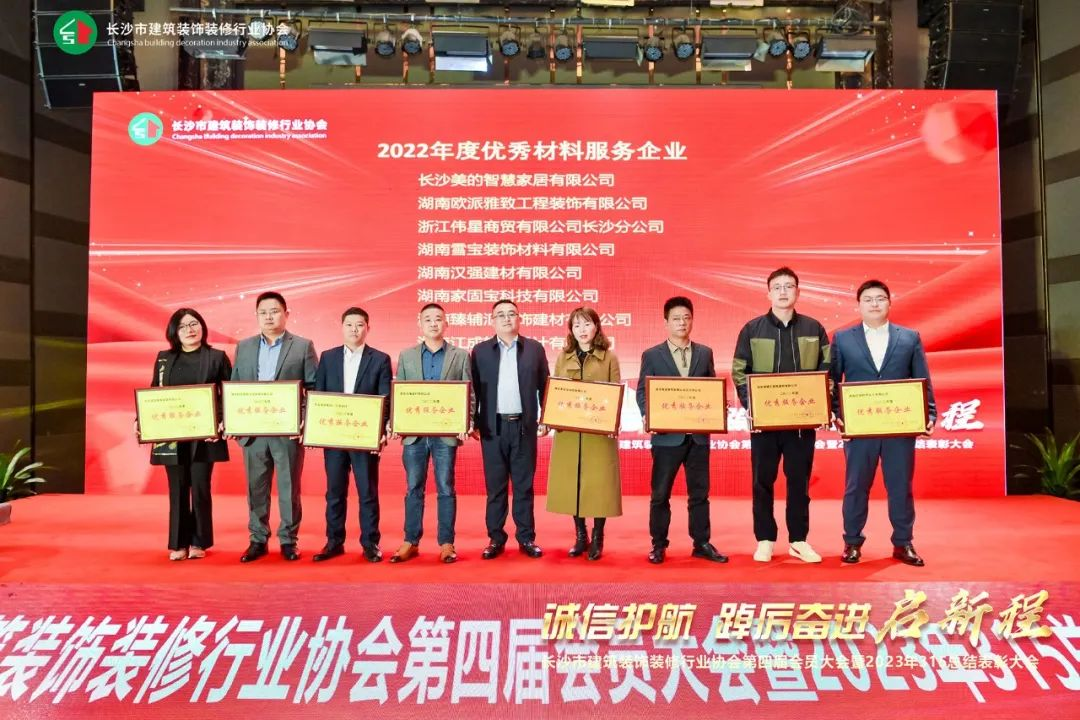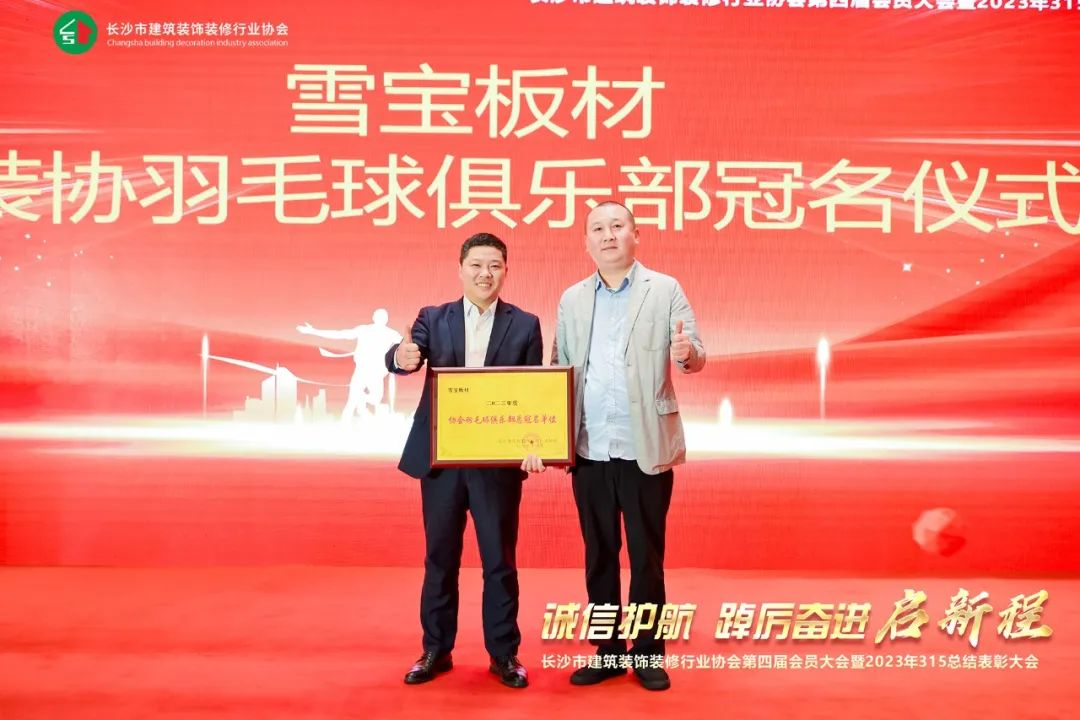 會議現(xiàn)場,雪寶板材與長沙市建筑裝飾裝修行業(yè)協(xié)會達(dá)成簽約合作,成為協(xié)會羽毛球俱樂部冠名單位,并榮獲“2022年度優(yōu)秀材料服務(wù)企業(yè)”,攜手為本土建筑裝飾裝修行業(yè)創(chuàng)新發(fā)展及締造美好人居環(huán)境提供高品質(zhì)保障。