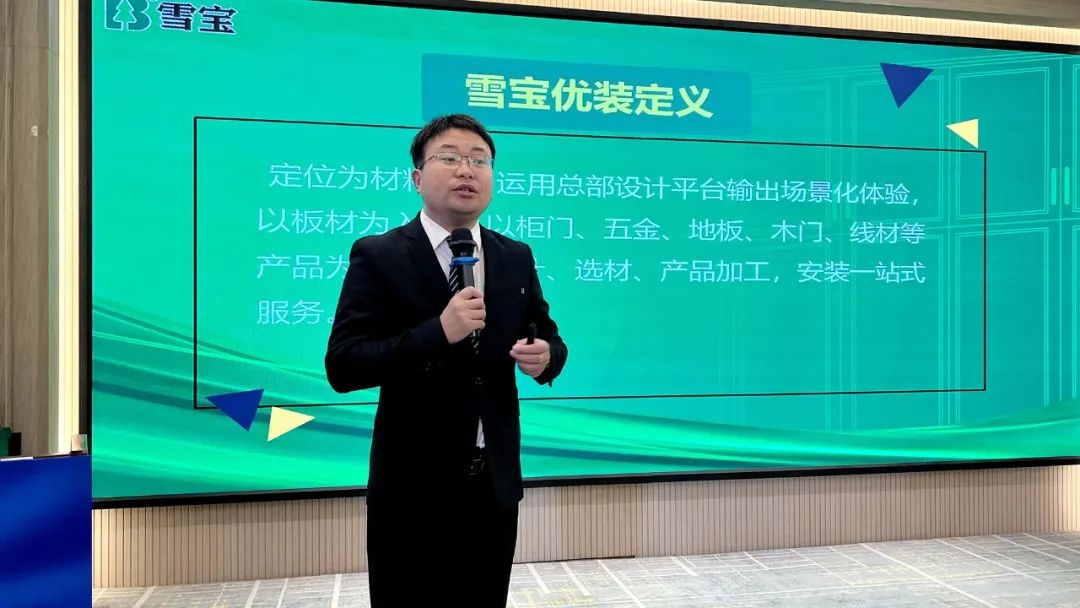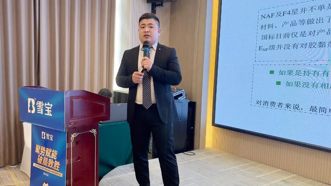 雪寶華北營銷中心生態板事業部河南省區經理劉強就“雪寶ENF級環保板材新品發布”展開課程講解。