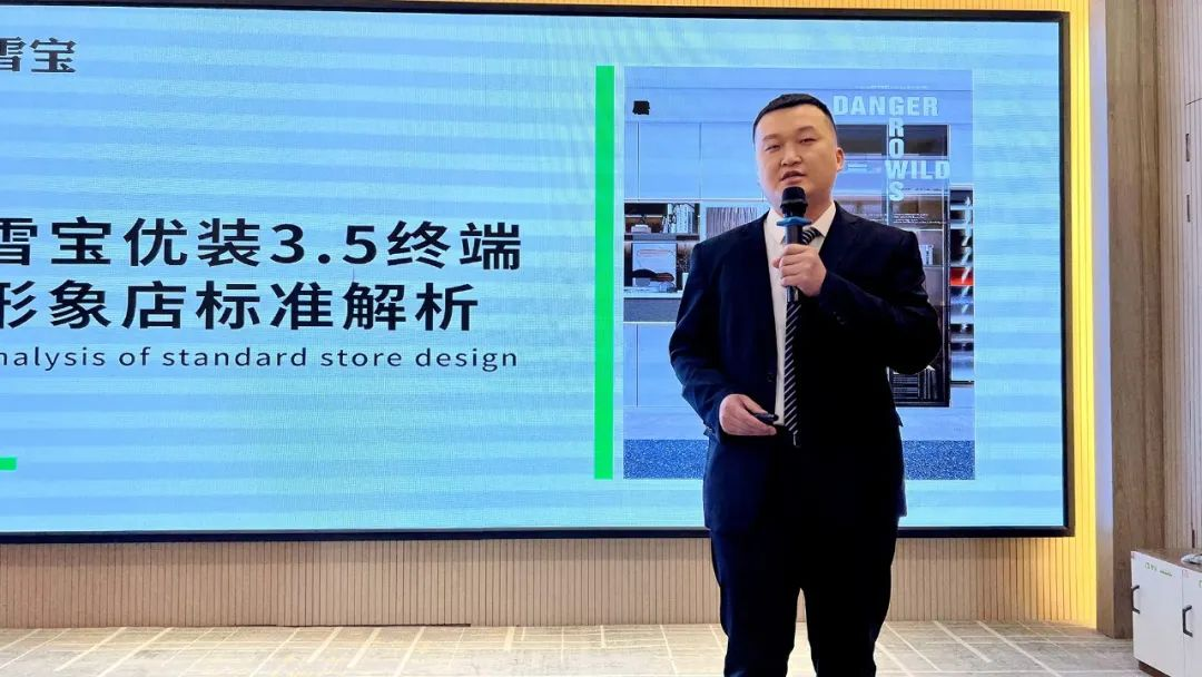 在這個“看顏值”的時代,終端門店形象需要更好的迎合市場發展變化和滿足愈發年輕化的消費群體訴求!會中,華北區域優裝設計負責人程中順就雪寶優裝3.5終端形象店標準模式進行了系統的講解,從店面形象標準打造、優裝產品配套展示、設計風格個性搭配、空間場景沉浸體驗等方面深入解析,明確雪寶優裝新門店的差異化優勢。
